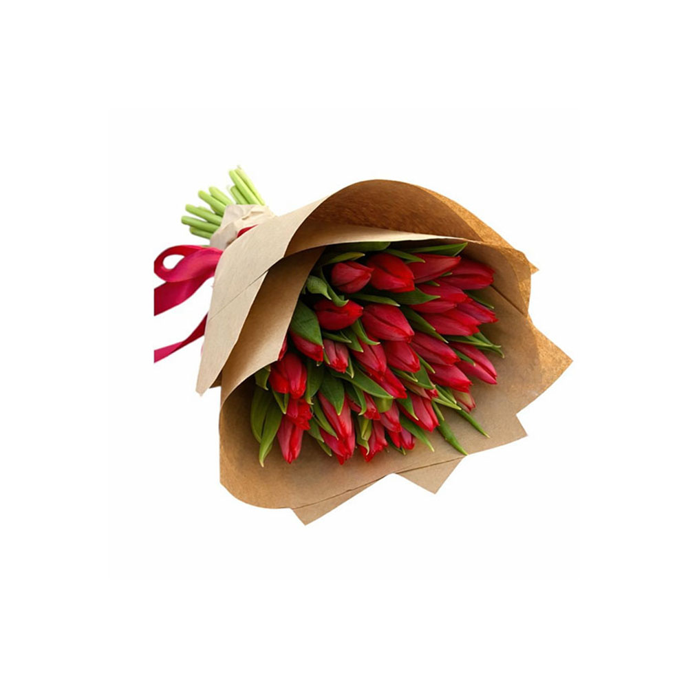 Thirty or Thirty-one Tulips arranged in style ribbon bouquet