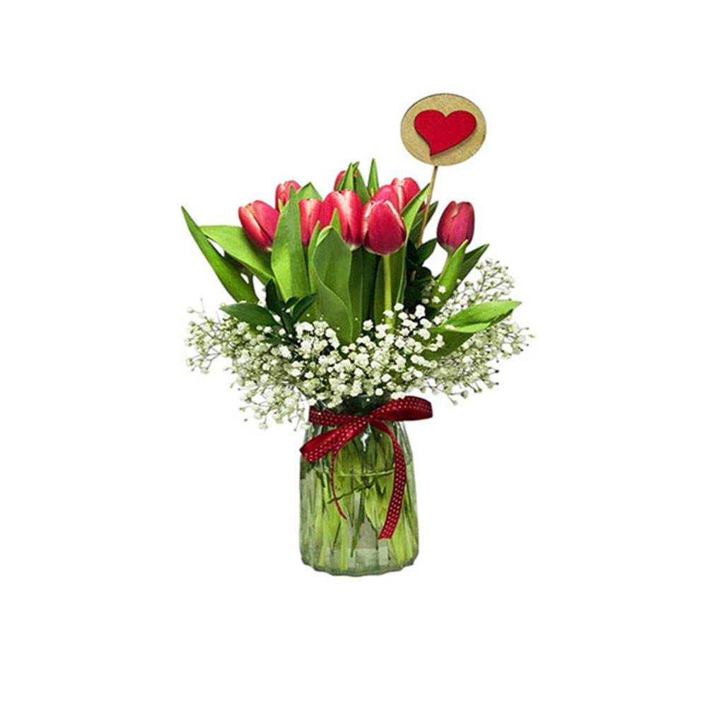 Tulips & Greeneries arranged in Glass Vase